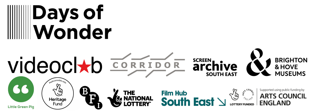 Double Act is presented as part of Days of Wonder, produced and curated by videoclub with Corridor, in partnership with Brighton & Hove Museums and Screen Archive South East. Supported by National Lottery Heritage Fund, Arts Council England and BFI & Film Hub South East.